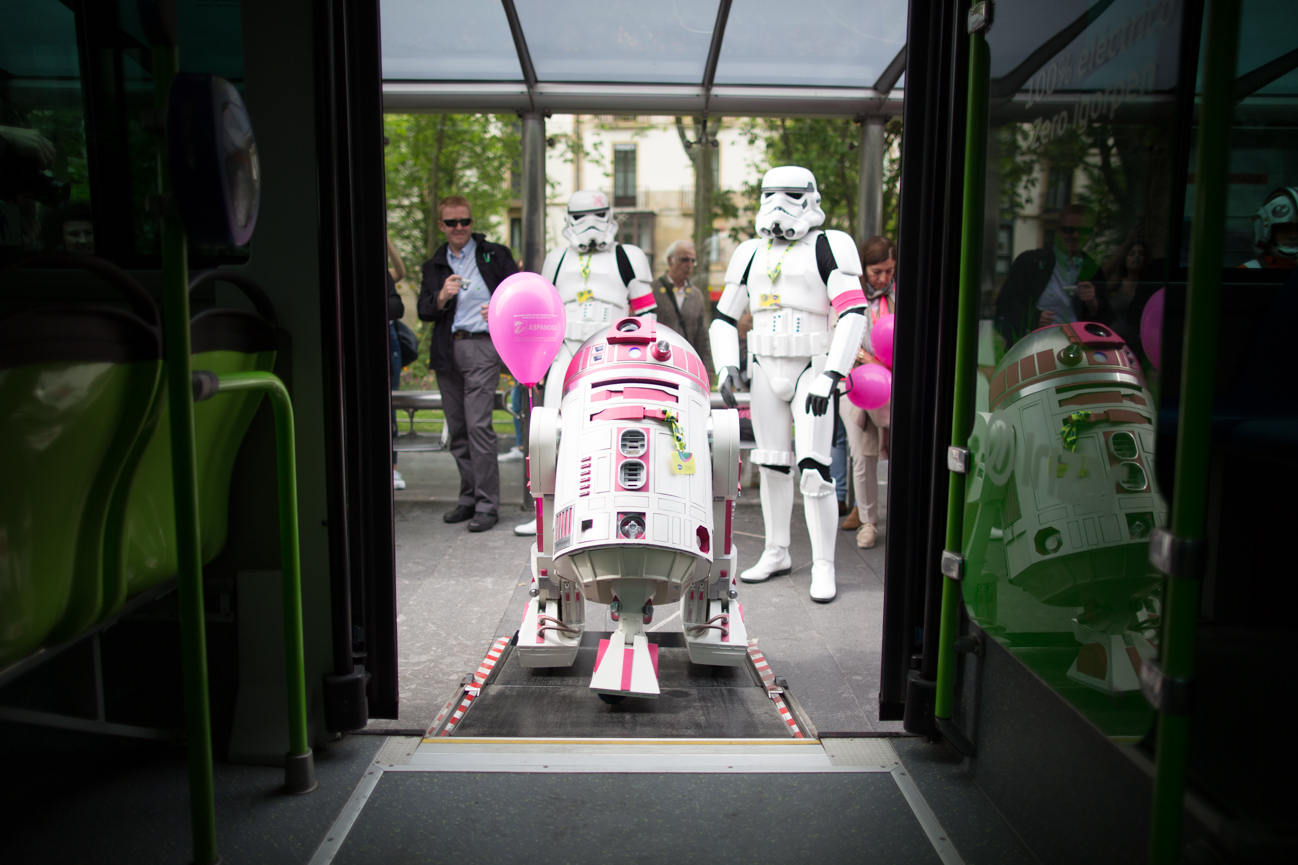 Aprovechando que el 4 de mayo se celebra el “Nazioarteko Star Wars eguna” y bajo el lema ‘May the 4th (Force) be with you’ (Que la fuerza te acompañe), el robot R2-KT entregó regalos a los niños y niñas del Hospital Donostia, colaborando, de esta manera con ASPANOGI, Asociación de Padres de Niños Oncológicos de Gipuzkoa.