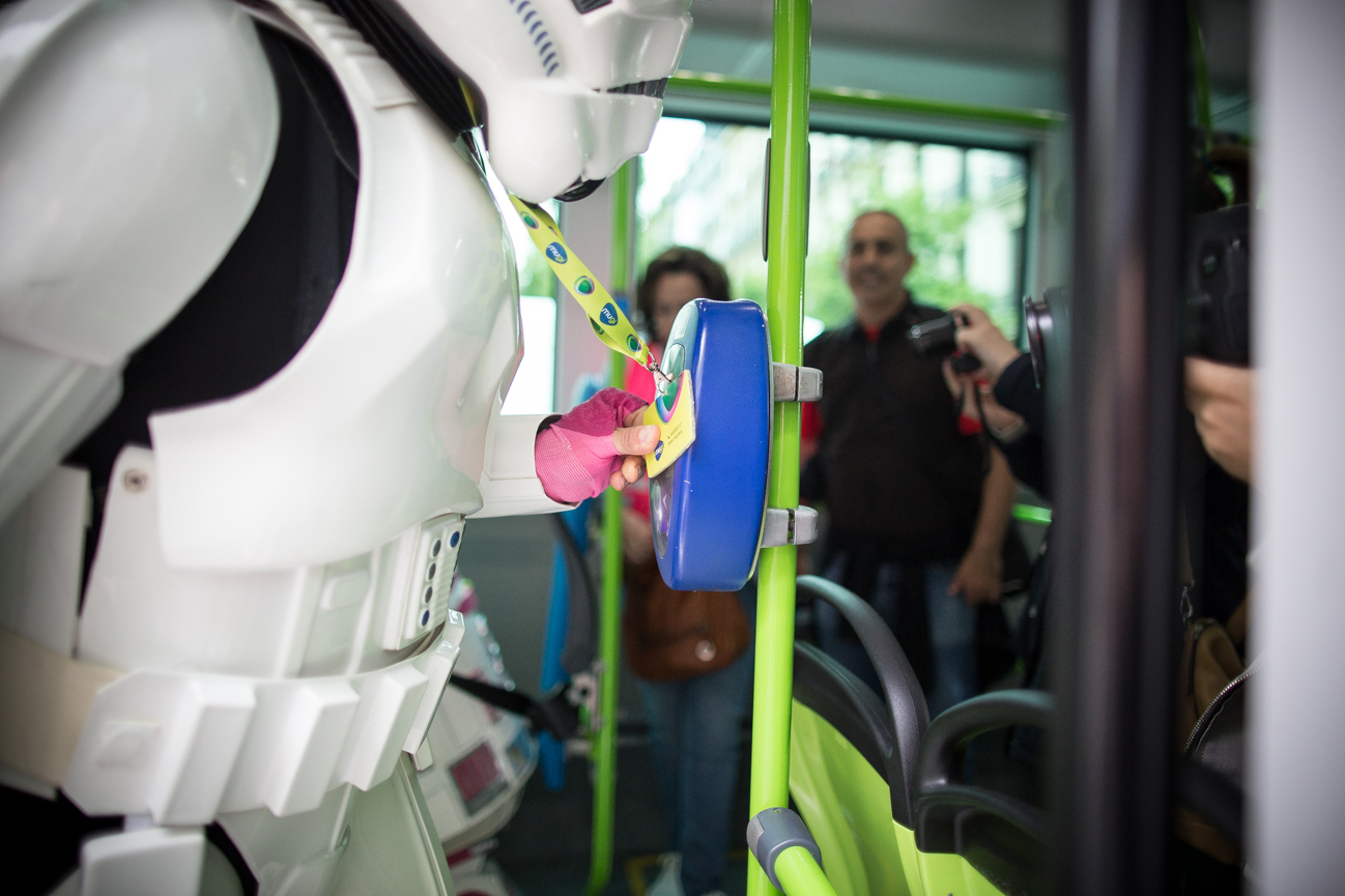 La Autoridad Territorial del Transporte en Gipuzkoa se ha unido a esta iniciativa creando una tarjeta personal Mugi para KaTy y organizando un autobus entre el Boulevard y el Hospital Donostia para R2-KT y la Legión 501, ya que KaTy precisa del transporte público para este tipo de desplazamientos.