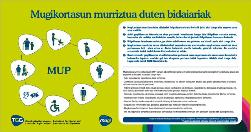 Jasangarritasun politikan aurrera eginez, beste pausu bat eman nahi izan du Gipuzkoako Garraioaren Lurralde Agintaritzak, garraio publikoan irisgarritasuna bermatzea, alegia. Horrela, ibilgailu guztietan mugikortasun murriztua duten pertsonentzat erreserbatutako plazak eta espazioak daude; halaber, informazioa prestatzerakoan, Garraioaren Agintaritzak berdintasun irizpideak, hizkuntza barneratzailea eta ulerterraza erabili ditu.